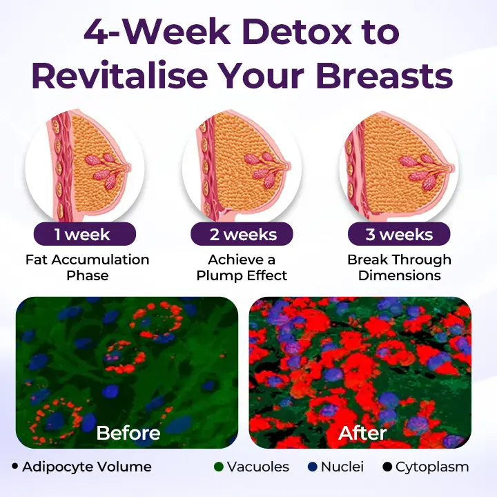 Fitoestrogeni lahko posnemajo signalno transdukcijo endogenega estrogena, modulirajo diferenciacijo adipocitov in lokalno odlaganje maščobe ter spodbujajo zdravo porazdelitev maščobe v predelih prsi in bokov, s čimer ustvarijo okroglejšo, bolj čvrsto in gladko konturo telesa, ki predstavlja naravne ženstvene obline od znotraj navzven.