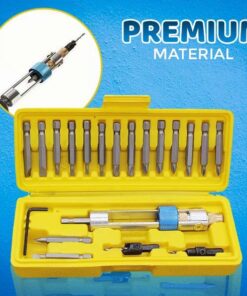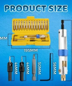 - PAKET VKLJUČUJE: 1 x vrtalni vijačnik za polčas, 8 x nastavkov Phillips (po 2: PH0,PH1,PH2,PH3), 8 x nastavkov s ploščato glavo (po 2: 1/8″ 3,2 mm, 5/32″ 4 mm, 3/16″ 4,8 mm, 1/4″ 6,3 mm), 2 x Vgrezni nastavki (3/32″ 2,4 mm, 1/8″ 3,2 mm), 1 x imbus ključ, 1 x etui (7,6 x 3″ / 19,4 x 7,4 cm)