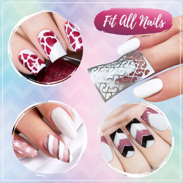 Nalepke s šablono za poslikavo nohtov 144 nalepk